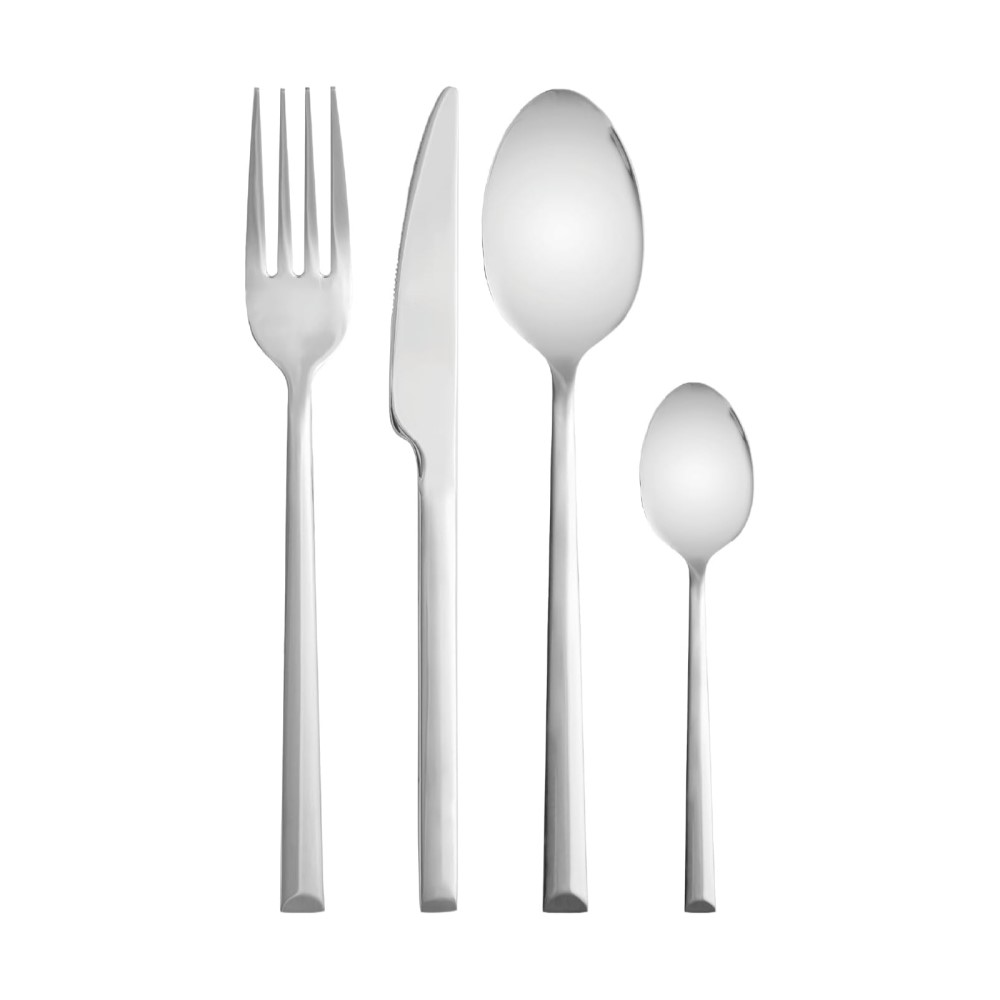 Conteúdo: 4 facas, 4 garfos e 4 colheres de mesa; 4 colheres de sobremesa;