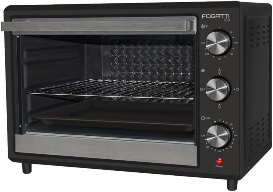 O forno elétrico de bancada Fogatti Black I50 é um eletrodoméstico projetado para trazer praticidade e versatilidade ao preparo de alimentos no dia a dia. Com capacidade interna de 50 litros, ele oferece espaço suficiente para assar grandes porções, cozinhar pratos familiares ou preparar vários alimentos simultaneamente, tornando-se uma opção adequada para famílias ou quem gosta de cozinhar receitas maiores.