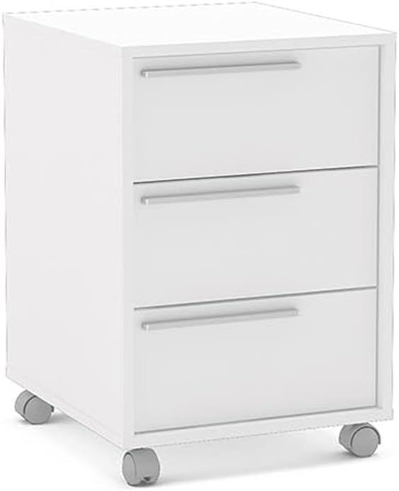 3 gavetas com puxadores plásticos, desenvolvidas para armazenar documentos, material de escritório, roupas ou itens pessoais de forma organizada.